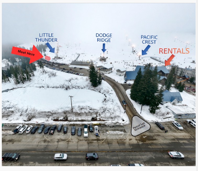 We will meet just east of the Little Thunder Chairlift base. Please see the maps at the end of this update to help you locate us. We hope to have a few Skibacs signs up but mostly look for our Blue parkas.